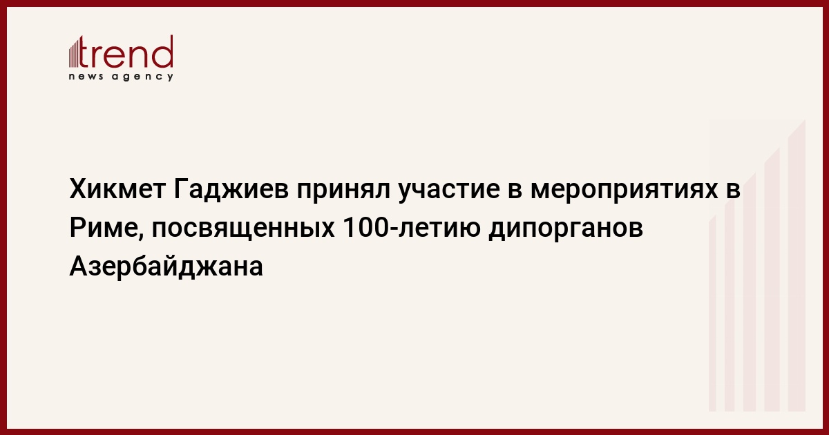 БАКУ /Trend/ - В рамках визита в Италию заведующий отделом по вопросам внешней политики Администрации Президента Азербайджана Хикмет Гаджиев выступил в научно-академических мероприятиях, посвященных 100-летию органов дипломатической службы Азербайджана, сообщает Trend.
