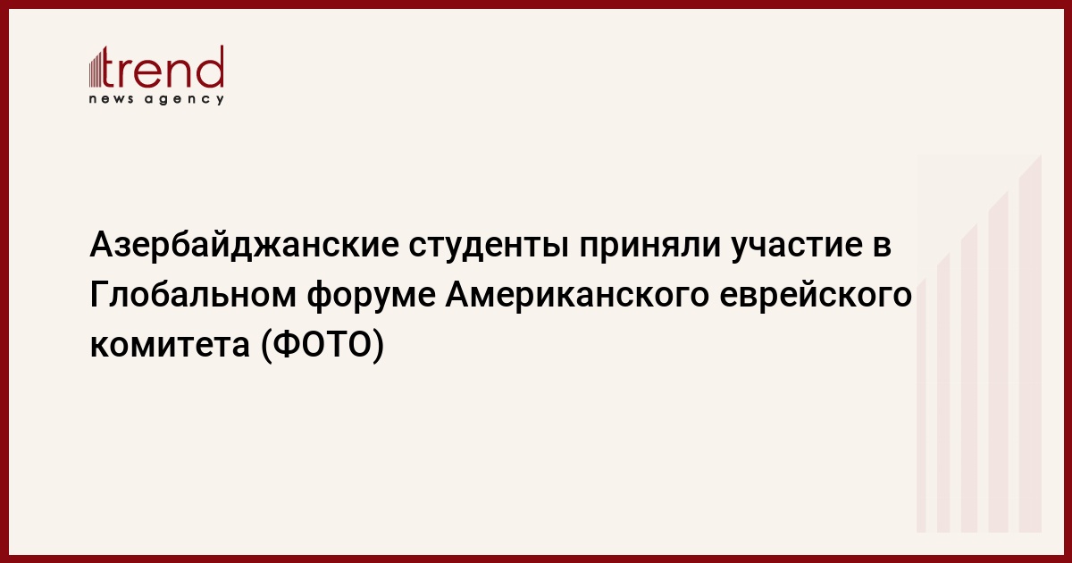 БАКУ /Trend/ - В Вашингтоне со второго по четвертое июня прошел ежегодный Глобальный форум Американского еврейского комитета, среди более чем двух тысяч гостей которого, участвовали и четверо азербайджанских студентов, сообщает в четверг Trend со ссылкой на пресс-службу Госкомитета по работе с диаспорой.