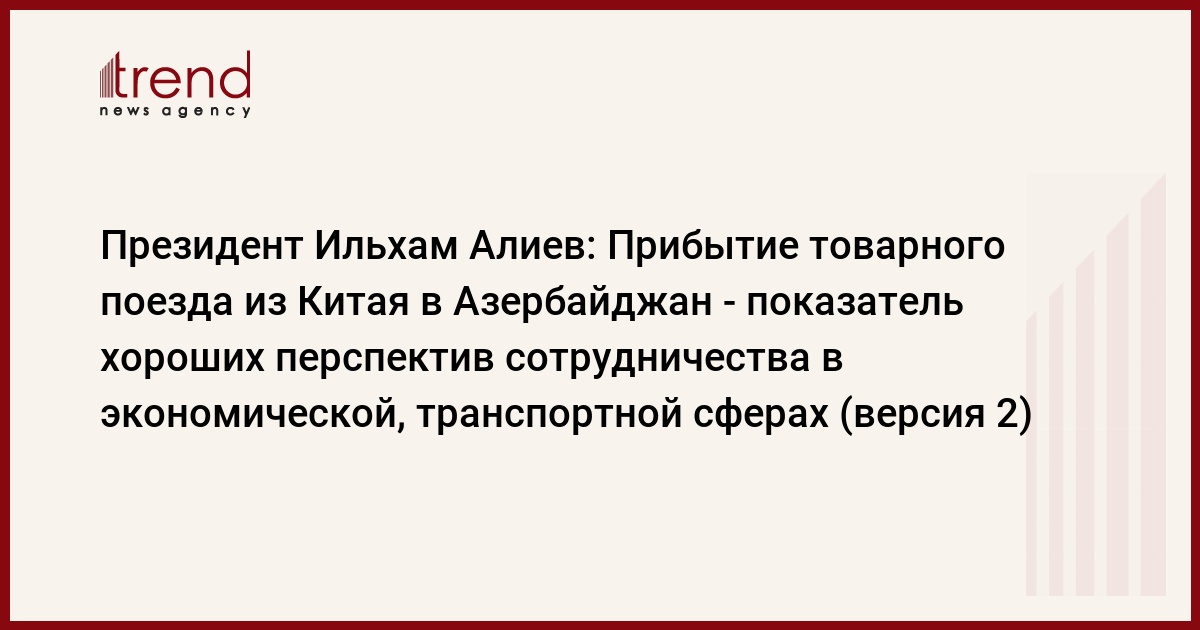 БАКУ /Trend/ - Прибытие товарного поезда из Китая в Азербайджан - показатель хороших перспектив сотрудничества в экономической, транспортной сферах.