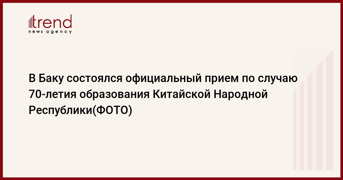БАКУ/Trend/ - 26 сентября посольство Китая в Азербайджане устроило официальный прием по случаю национального праздника - 70-й годовщины образования Китайской Народной Республики, сообщает Trend.