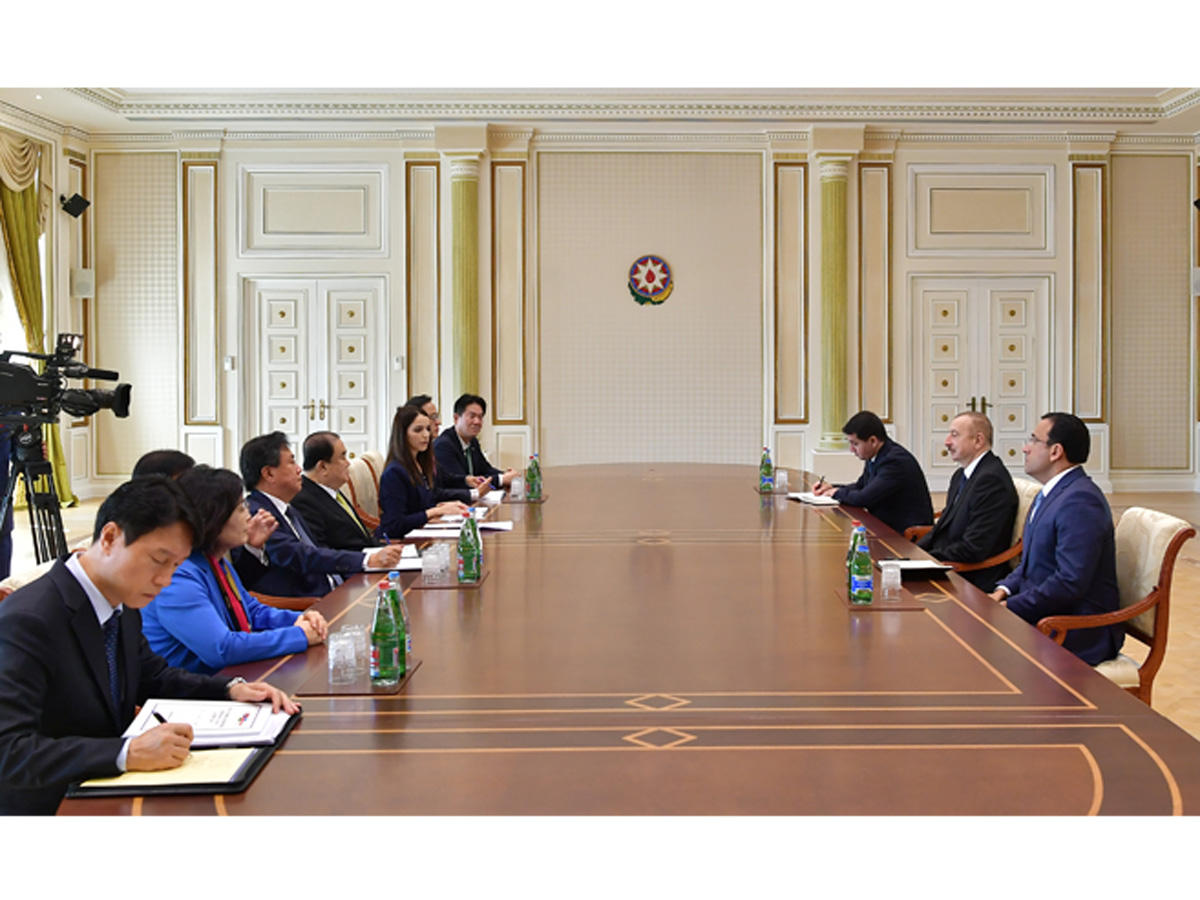 - Искренне приветствую Вас в Азербайджане, добро пожаловать в нашу страну. Уверен, что ваш визит придаст новый импульс связям между двумя странами. Наши отношения успешно развиваются. Рад, что корейско-азербайджанские связи поднялись на новую ступень. Наши политические связи находятся на высоком уровне, и ваш визит еще раз подтверждает это. Были осуществлены взаимные официальные визиты на уровне глав государств. Конечно, сотрудничество в экономической сфере приобретает еще больший размах. В Азербайджане официально зарегистрировано около 70 корейских компаний. Несколько из них участвуют в различных инфраструктурных и строительных проектах в Азербайджане. Архитектурный дизайн некоторых новых привлекательных с архитектурной точки зрения зданий в городе Баку был выполнен корейскими компаниями. В целом, мы хотим, чтобы взаимное инвестирование получило более широкий размах. Азербайджан вложил в вашу страну инвестиции в размере около полумиллиарда долларов. Наш Государственный нефтяной фонд инвестировал в недвижимость в Корее. Уверен, что в предстоящие годы взаимное инвестирование получит более широкий размах.
