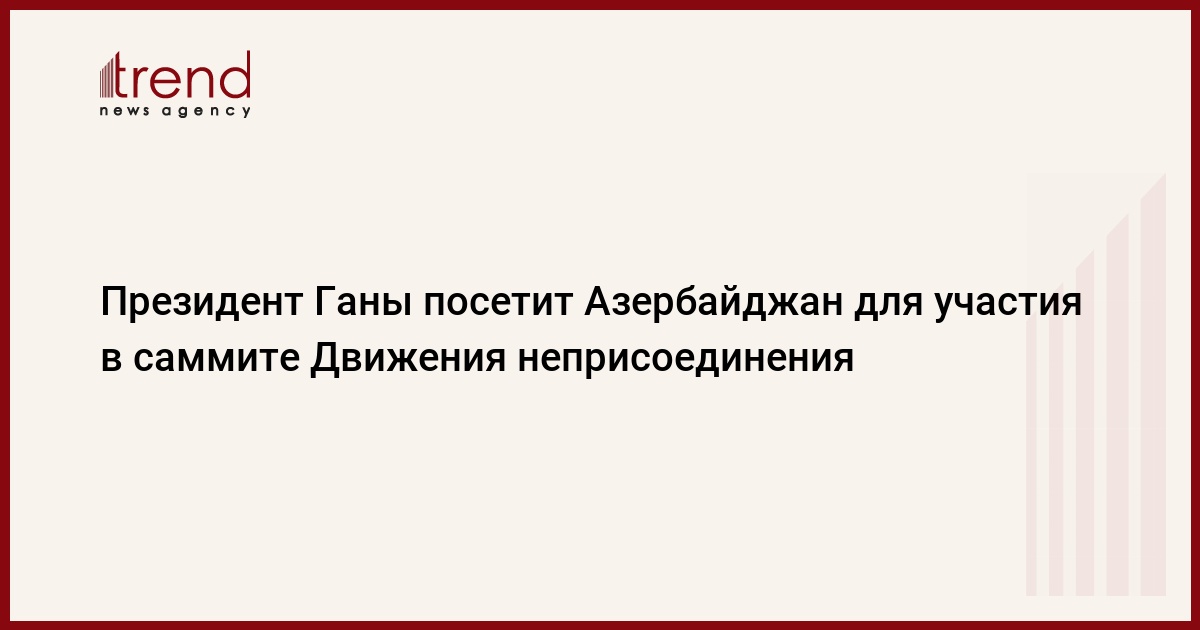 БАКУ /Trend/ - Президент Ганы Нана Аддо Данква Акуфо-Аддо 24 октября 2019 года отправится в Азербайджан, чтобы принять участие в 18-ом саммите Движения неприсоединения, который состоится в Баку, сообщает в среду Trend.