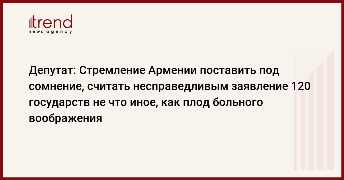 " Стремление поставить под сомнение, считать несправедливым заявление 120 государств может быть лишь плодом больного воображения. Все попытки Армении, неоднократно ставить в международных институтах принцип самоопределения народов во главу угла, потерпели крах. Даже страны, демонстрирующие в отношении Азербайджана двойные стандарты, не сумев пойти против международного права и принципов, все же были вынуждены признать очевидное. Армения, которая обвиняет сегодня Азербайджан в нетерпимости и ведении политики ненависти, несет ответственность за гибель тысяч азербайджанцев. Не лучше ли задуматься об этом?Ведь очевидно, что от конфликта пострадал как Азербайджан, так и Армения. Закрытие границ с Турцией и Азербайджаном, недопущение Армении к крупным международным проектам в регионе являются основными причинами экономического упадка этой страны. Простой армянский народ понимает это и такие темы регулярно обсуждаются в Армении. А пустые заявления, рассчитанные на внутреннюю аудиторию, не что иное, как официальная шумиха, которой пытаются скрыть панику, по указаниям определенных лиц.