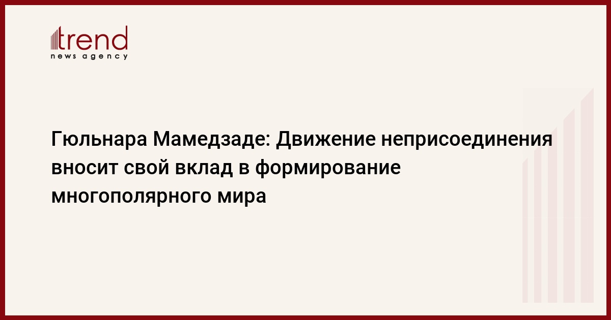 Движение будет способствовать переходным процессам к становлению мультиполярного мира, в том числе открывая путь малым странам к участию в регулировании мировых процессов, что подтверждает и пример Азербайджана.