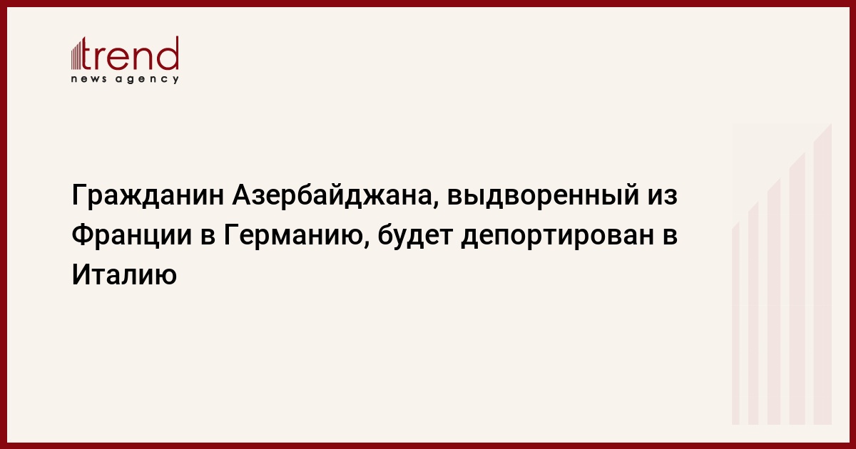 БАКУ /Trend/ - Гражданин Азербайджана Рафаил Пириев, задержанный во Франции и переправленный в Германию будет депортирован в Италию.