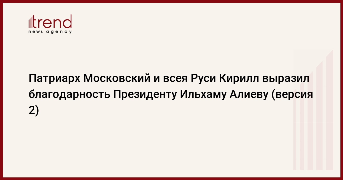 БАКУ /Trend/ - 23 ноября Патриарх Московский и всея Руси Кирилл направил Президенту Ильхаму Алиеву письмо, в котором выразил благодарность за организацию II Бакинского саммита религиозных лидеров мира и теплый прием.