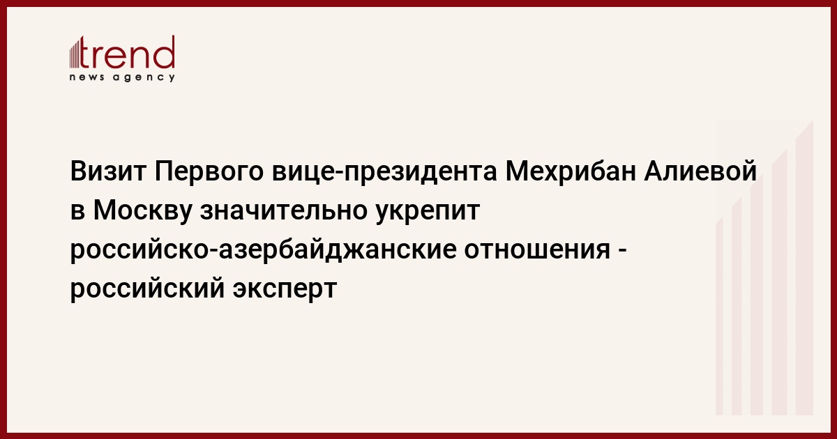 «Визит Первого вице-президента Азербайджана в столицу Российской Федерации придаст импульс укреплению политического диалога и двустороннего сотрудничества. Этот факт наглядно подтверждает и повестка визита, в рамках которого Первому вице-президенту Азербайджана была вручена высокая награда – орден Дружбы, лично Президентом Российской Федерации Владимиром Путиным, что свидетельствует о дружественном характере двусторонних отношений между Россией и Азербайджаном», - сказал Глава Центра стратегического анализа ИИРР.