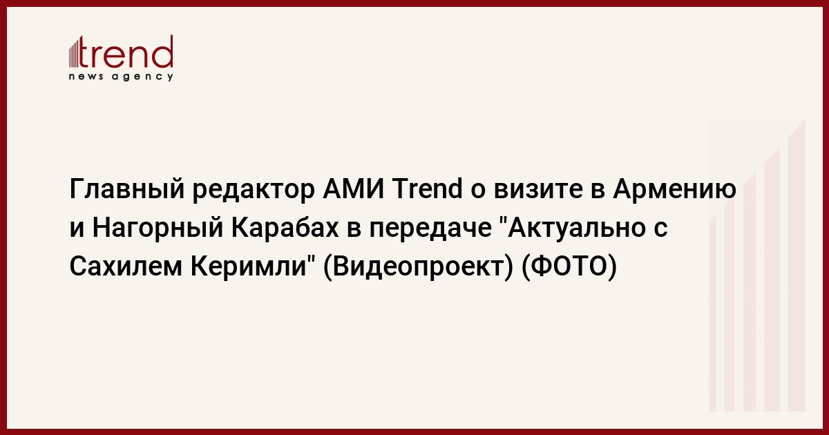 БАКУ /Trend/ - Агентство международной информации Trend представляет видеоинтервью главного редактора Агентства Эльчина Велиева в авторском проекте "Актуально с Сахилем Керимли".