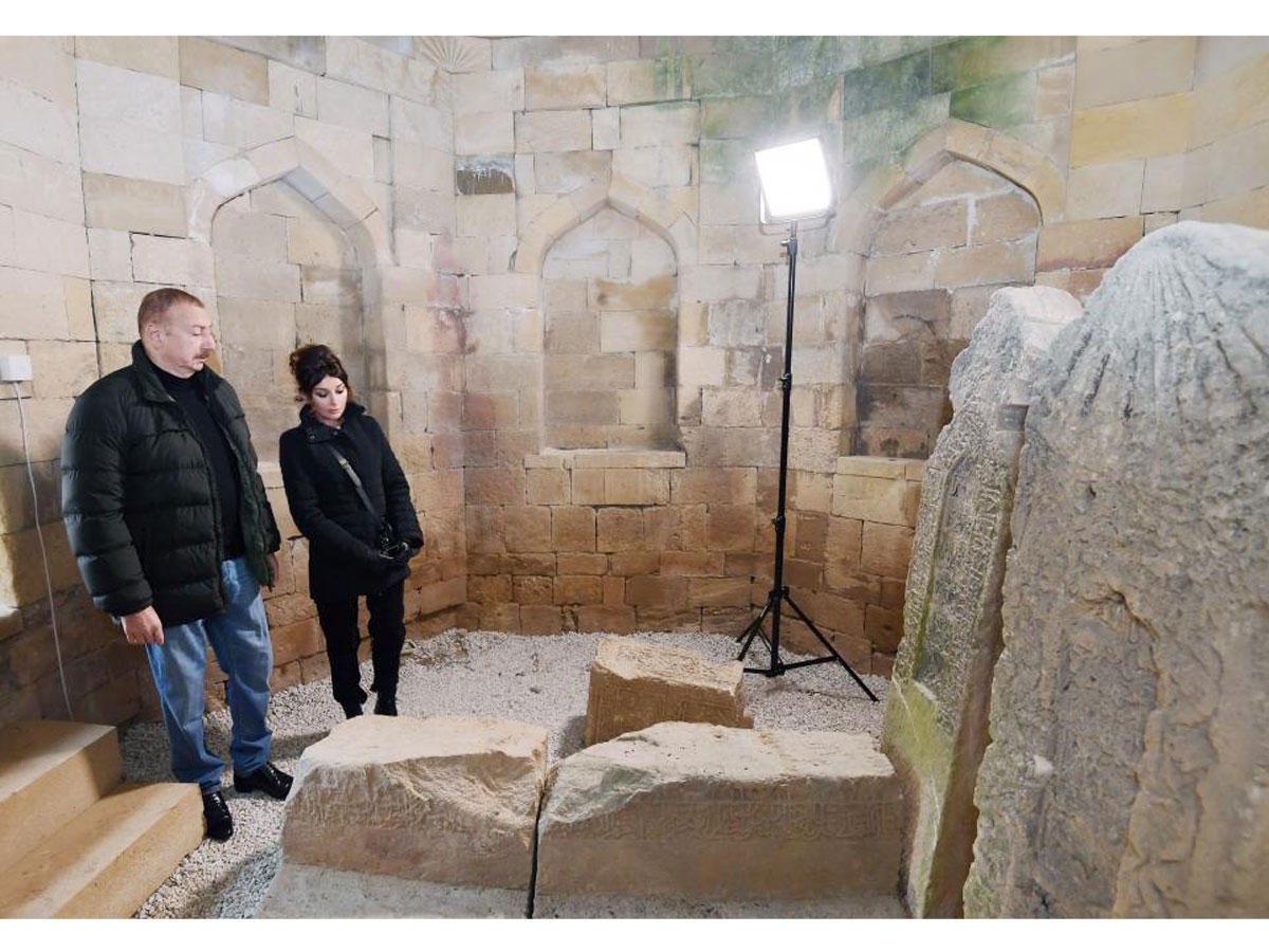 Глава Исполнительной власти Шамахинского района Таир Мамедов, информируя главу государства и первую леди о благоустройстве, реставрационных и ремонтных работах, проводимых на кладбище и в усыпальнице, сказал: