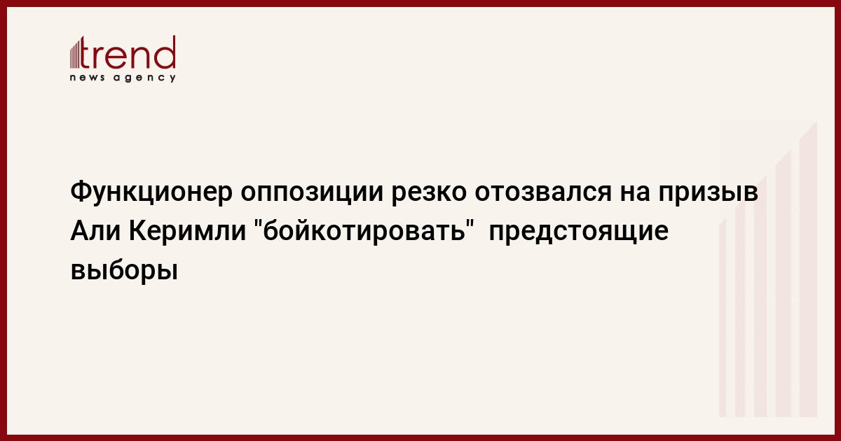 В своей публикации в Facebook он написал, что внимание привлекают главные аргументы, которые Али Керимли приводит в связи с решением о выборах. Он добавил, что в любом случае, отсутствие единой позиции у оппозиции - явление нехорошее: "Не собираюсь вступать в дискуссию, поскольку взаимные обвинения по принятым решениям - пустая трата времени. То, что я хочу сказать, связано не с самими решениями. Но я считаю, что их обоснование стоит оспорить. Али Керимли говорит, что они, как Национальный совет, (т.н. "Национальный совет" - ред.) потому приняли решение о "бойкоте", что этого хотел народ. Поскольку народ решил "бойкотировать" выборы, они приняли решение о "бойкоте". Али Керимли также отметил, что не народ согласился с их решением о "бойкоте", но они приняли такое решение, согласившись с волей народа. Думаю, эти слова, вроде ласкающие слух, требуют серьезного обсуждения".