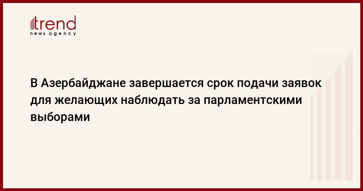 БАКУ /Trend/ - Завтра завершается подача в соответствующую окружную избирательную комиссию (ОИК) заявлений для проведения наблюдения вне определенного окружного округа за внеочередными парламентскими выборами, назначенными в Азербайджане на 9 февраля, сообщает в понедельник Trend.