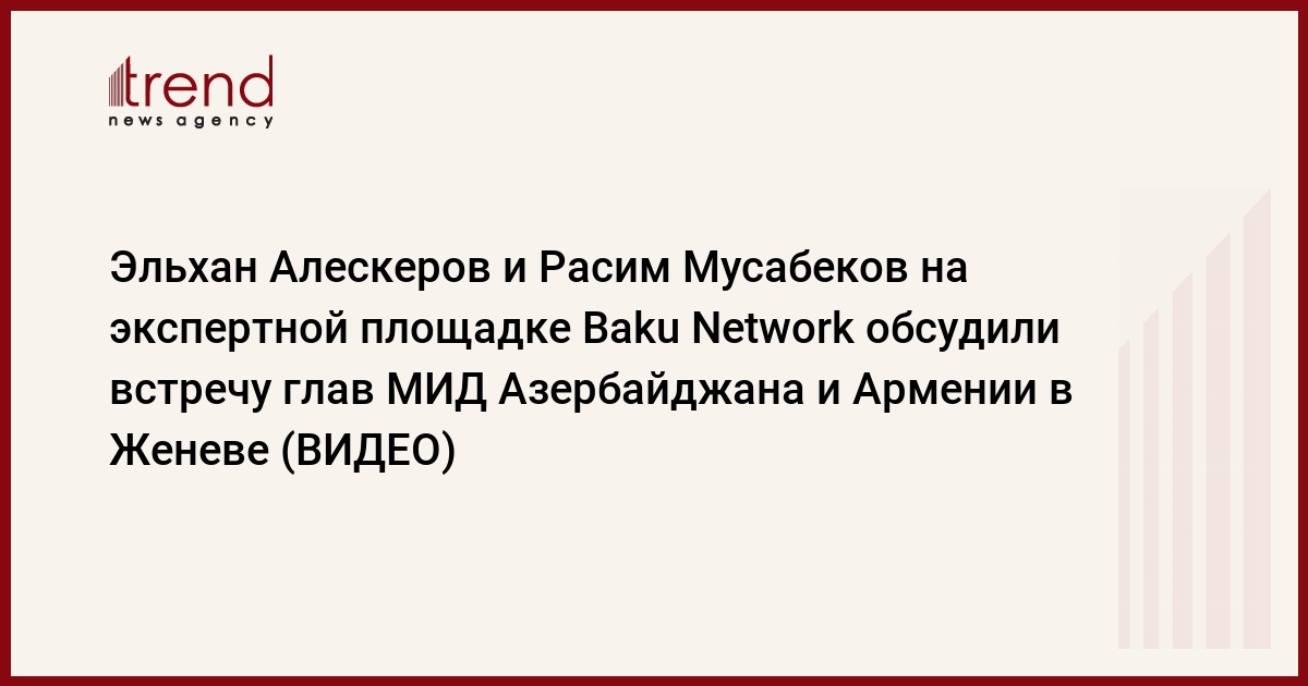 БАКУ/Trend/ - В Баку с участием директора экспертного совета Baku Network, доктора философии Эльхана Алескерова и депутата Милли Меджлиса и известного азербайджанского политолога Расима Мусабекова были обсуждены итоги переговоров, состоявшихся между министрами иностранных дел Азербайджана и Армении по нагорно-карабахскому урегулированию в Женеве при участии сопредседателей Минской группы ОБСЕ и личного представителя действующего председателя ОБСЕ.