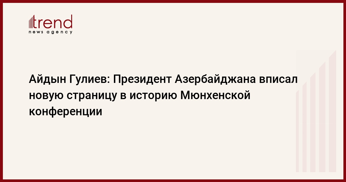 БАКУ/Trend/ - Ежегодное участие Президента Азербайджана в Мюнхенской конференции каждый раз сопровождается новыми идеями и подходами в контексте сотрудничества и безопасности.
