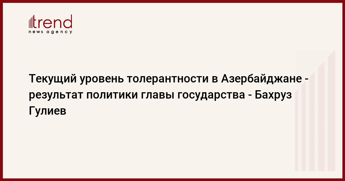 "Достижение текущего уровня толерантности в Азербайджане является результатом политики, проводимой главой государства, а также равного отношения государства и народа к каждому гражданину, независимо от религии, языка и национальности", - сказал Гулиев.