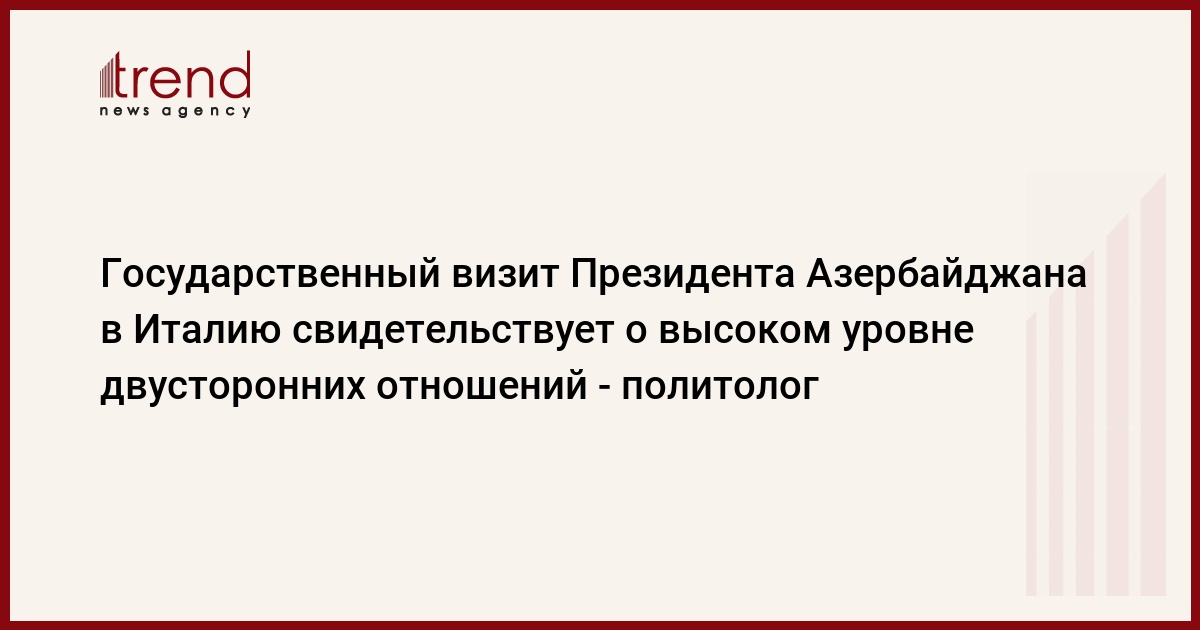 БАКУ/Trend/ - Высокий (государственный) статус визита Президента Азербайджана в Италию свидетельствует о высокой уровне отношений двух государств.