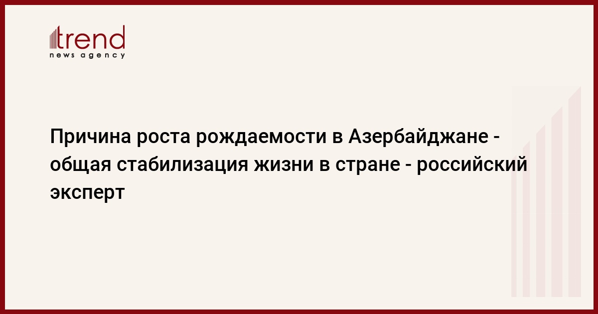 Эксперт отметил, что на момент распада СССР уровень рождаемости в Азербайджане был около трех детей на одну женщину: «Затем он снижался, и к началу 2000-х упал ниже показателя два ребенка, то есть стал меньше того минимума, который необходим для воспроизводства населения. А вот затем, уже в середине 2000 годов, возобновился рост. На рубеже 2000 г. – 2010 г. суммарный коэффициент рождаемости составил уже 2,3 – 2,4. Такой подъем рождаемости после того, как она упала ниже уровня, необходимого для простого воспроизводства, – для стран сегодняшнего мира довольно редкое явление. Гораздо чаще, если страна однажды за свою историю переходит к рождаемости ниже двух детей на одну женщину, превысить его уже не удается, как не удалось это, например в России, Украине, Белоруссии, странах Прибалтики, Центральной Европы.