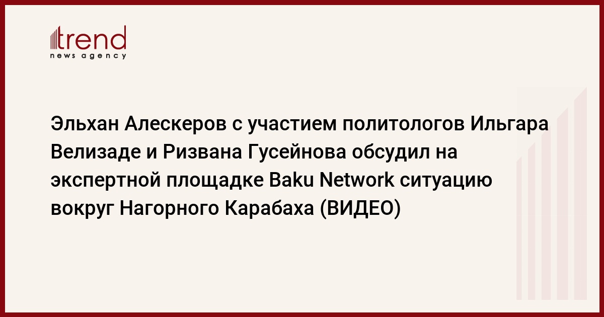 БАКУ /Trend/ - В Баку на экспертной площадке Baku Networк директор Экспертного совета Baku Network, доктор философии Эльхан Алескеров с участием экспертов Ильгара Велизаде и Ризвана Гусейнова обсудил ситуацию вокруг Нагорного Карабаха, а также решение официальной Москвы о запрете на въезд в Россию на пять лет двух членов так называемого "Карабахского Движения", в частности так называемого "министра" незаконной "НКР" Масиса Маиляна и бывшего "командующего" так называемых "сил самообороны" Самвела Бабаяна.