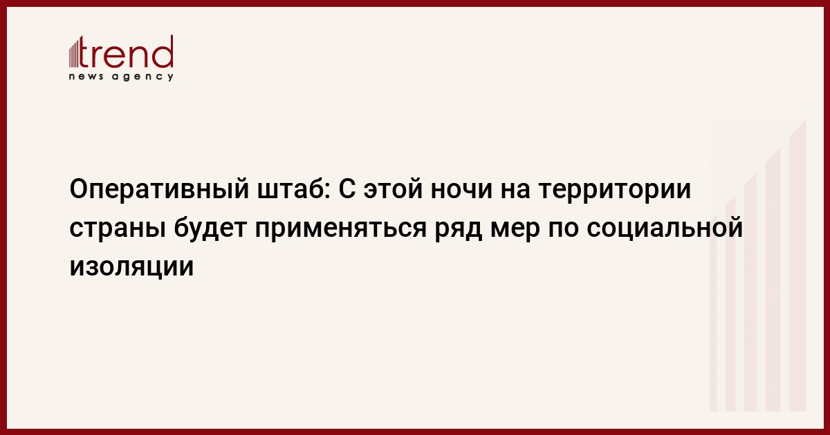 Как сообщает в пятницу Trend, Оперативный штаб при Кабинете министров Азербайджана проводит ряд мероприятий по социальной изоляции, которые будут применены на территории страны с 00:00 14 марта 2020 года: