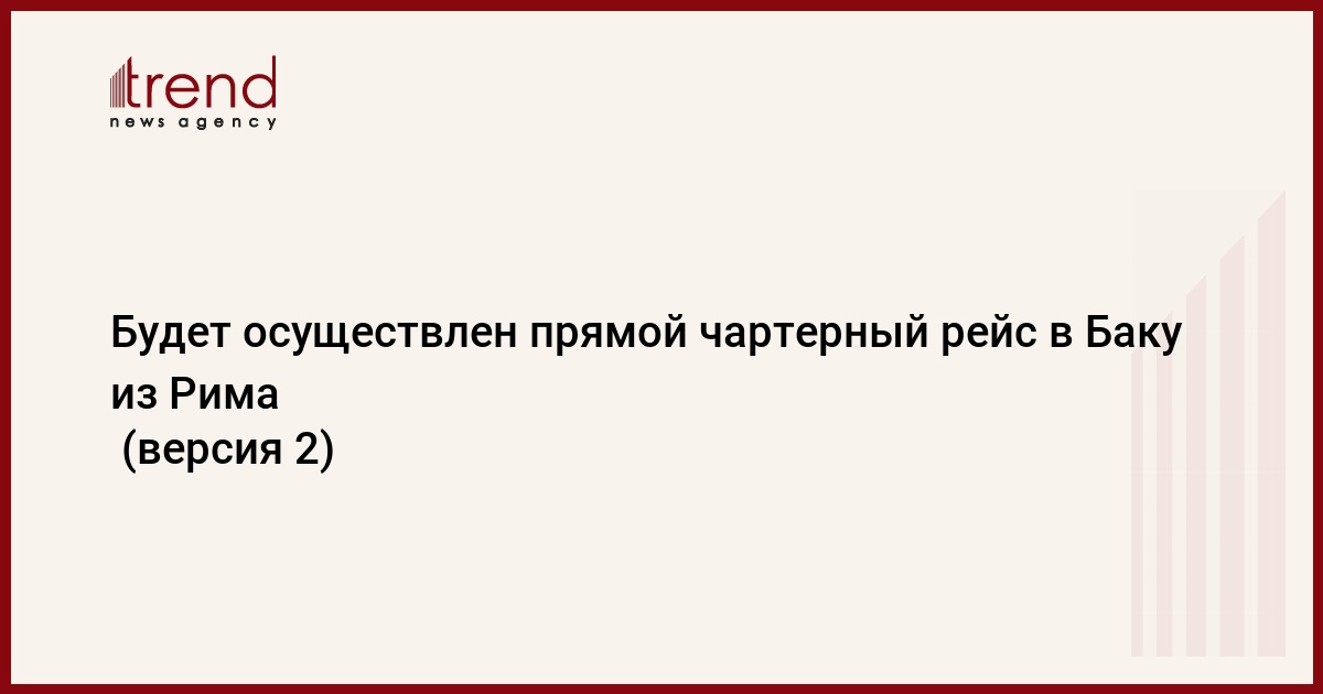 БАКУ /Trend/ - Будет осуществлен прямой чартерный рейс в Баку из Рима, сообщает во вторник Trend со ссылкой на страницу посольства Азербайджана в Италии в "Facebook".