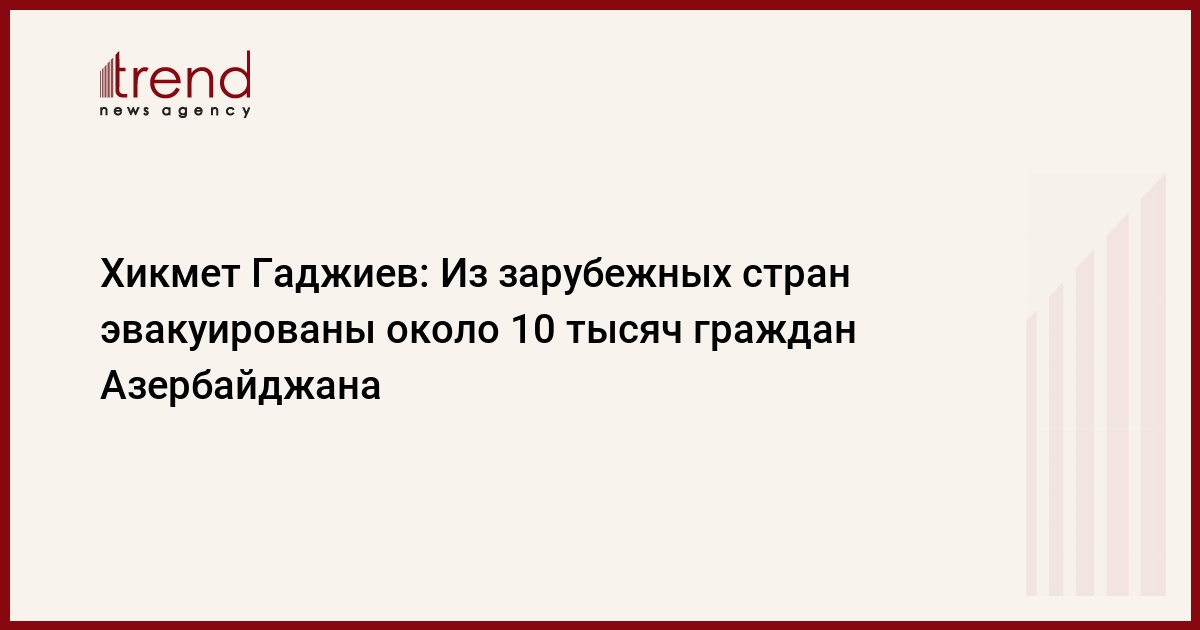 БАКУ /Trend/ - На сегодняшний день из зарубежных стран эвакуированы около 10 тысяч граждан Азербайджана.