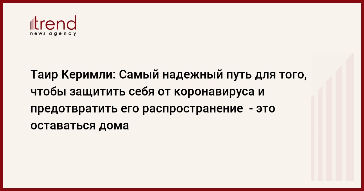 БАКУ /Trend/ - Самый надежный путь для того, чтобы защитить себя и предотвратить распространение коронавирусной инфекции - это оставаться дома.