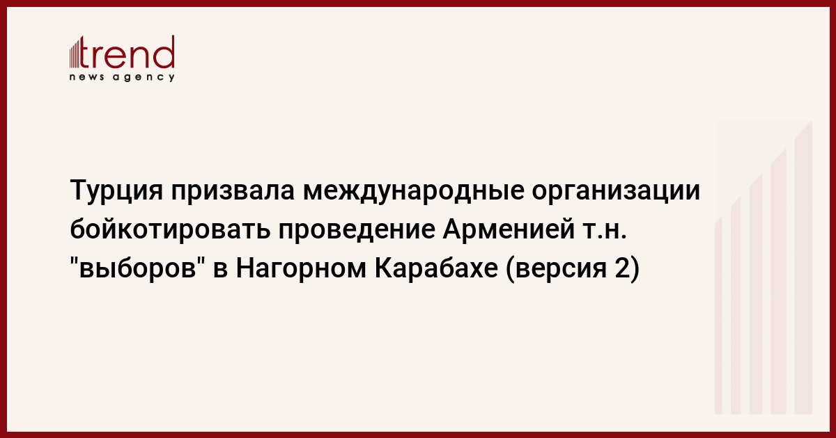 БАКУ /Trend/ - Турция призвала Минскую группу ОБСЕ и все международные организации бойкотировать проведение Арменией т.н. "выборов" в Нагорном Карабахе, сообщает в понедельник Trend со ссылкой на МИД Турции.