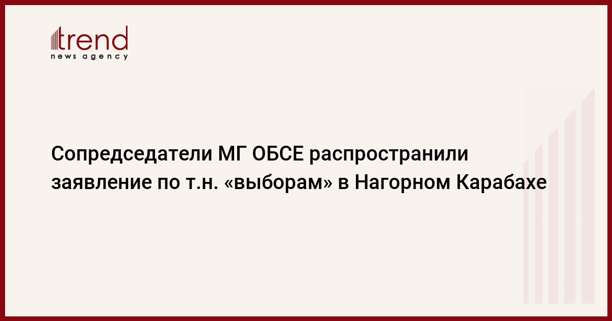 БАКУ/Trend/ - Сопредседатели МГ ОБСЕ распространили заявление по так называемым "выборам" в Нагорном Карабахе, сообщает во вторник Trend.