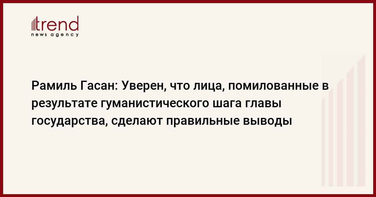 БАКУ /Trend/ - Подписание Президентом Ильхамом Алиевым очередного распоряжения о помиловании является ярким примером гуманистической политики государства.