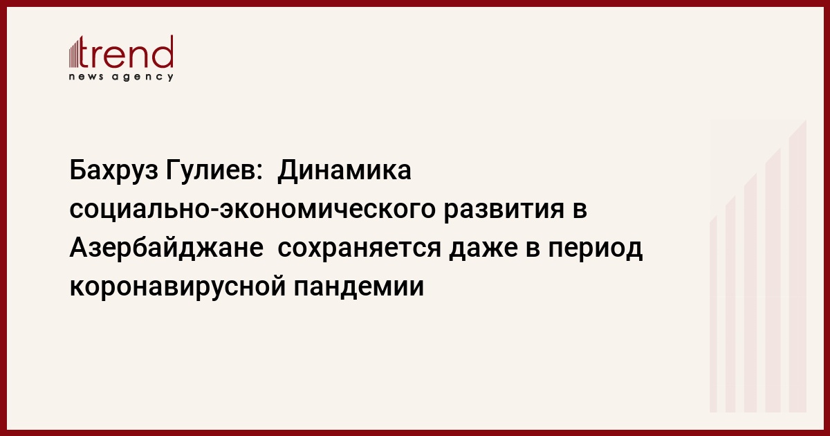 БАКУ /Trend/ - Динамика социально-экономического развития в Азербайджане сохраняется даже в период коронавирусной пандемии, заявил Trend главный редактор газеты "SƏS", политический эксперт Бахруз Гулиев, комментируя совещание под председательством Президента Ильхама Алиева, посвященное социально-экономическим итогам первого квартала 2020 года, на котором Президент отметил, что Азербайджан нацелен на успех и уверенно идет к поставленной цели.