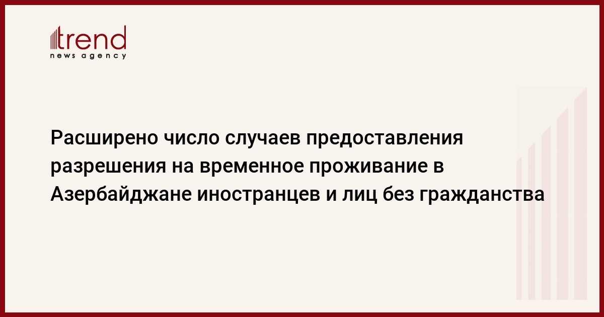 БАКУ /Trend/ - В законодательстве может быть расширено число случаев, когда иностранцам и лицам без гражданства предоставляется разрешение на временное проживание на территории Азербайджана.