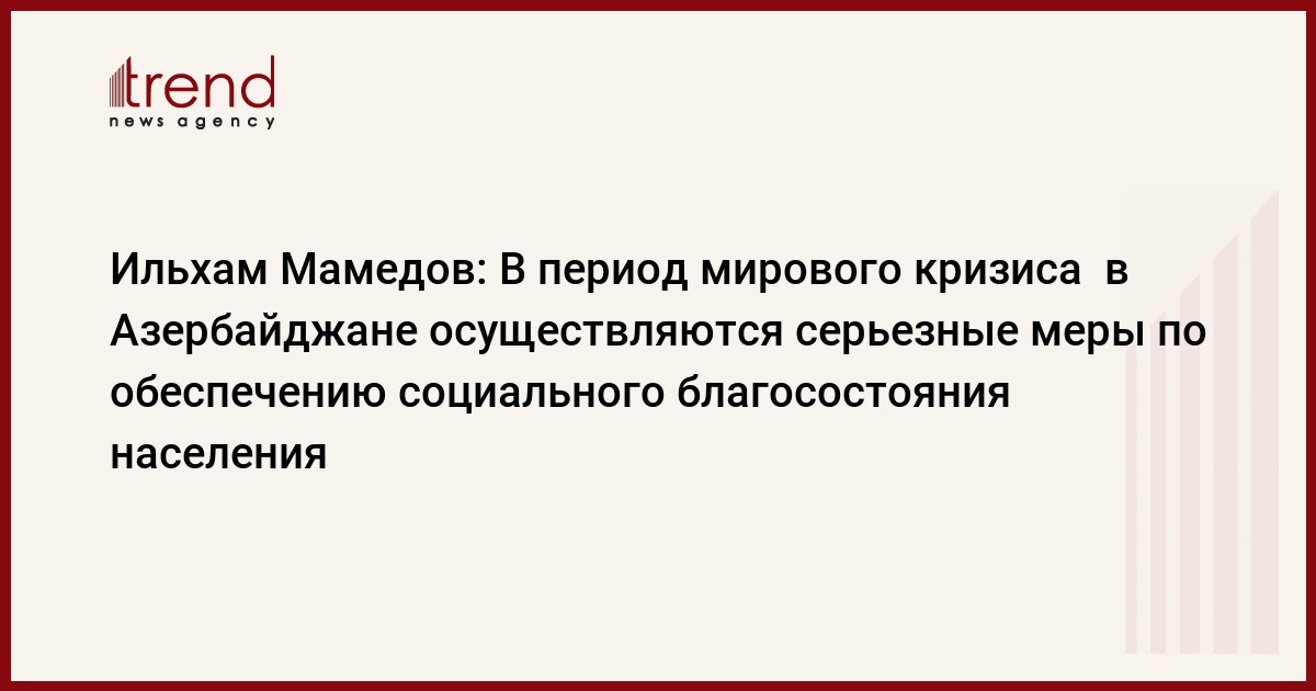 БАКУ/Trend/ - В период мирового кризиса в Азербайджане осуществляются серьезные меры по экономическому развитию, защите социального благосостояния населения. Все возможности государства направлены на защиту наших людей от коронавируса и решение социальных проблем.