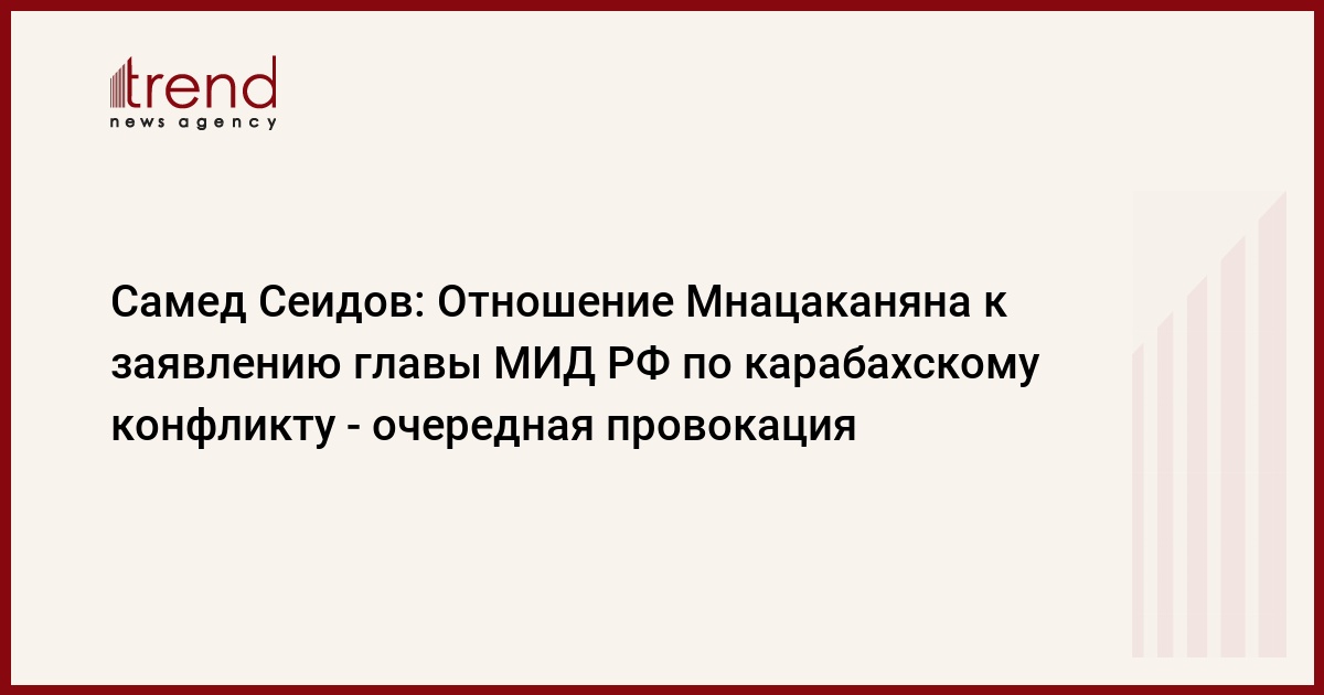 БАКУ /Trend/ - Отношение министра иностранных дел Армении Зограба Мнацаканяна к заявлению, озвученному главой МИД России Сергеем Лавровым по переговорам, проводимым по урегулированию армяно-азербайджанского нагорно-карабахского конфликта, во время видеоконференции 21 апреля, является очередной провокацией.