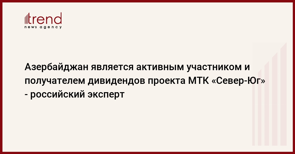 БАКУ /Trend/ - Азербайджан является не просто транзитной территорией, но и активным участником проекта МТК «Север-Юг» с крупными прогнозируемыми дивидендами.