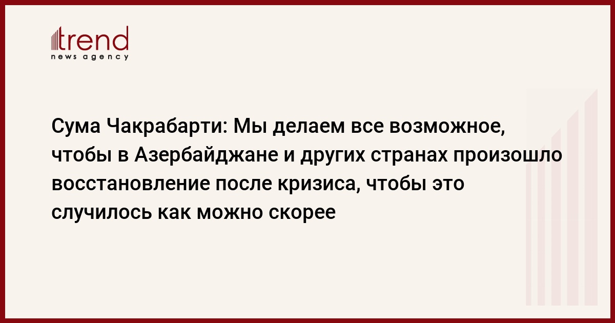 Как передает Trend, об этом сказал президент Европейского банка реконструкции и развития Сума Чакрабарти на видеоконференции с Президентом Ильхамом Алиевым.