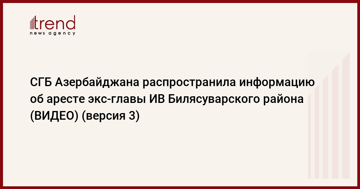 БАКУ/Trend/ - Служба государственной безопасности (СГБ) Азербайджана распространила информацию об аресте экс-главы ИВ Билясуварского района Махира Гулиева, сообщает в пятницу Trend со ссылкой на СГБ.