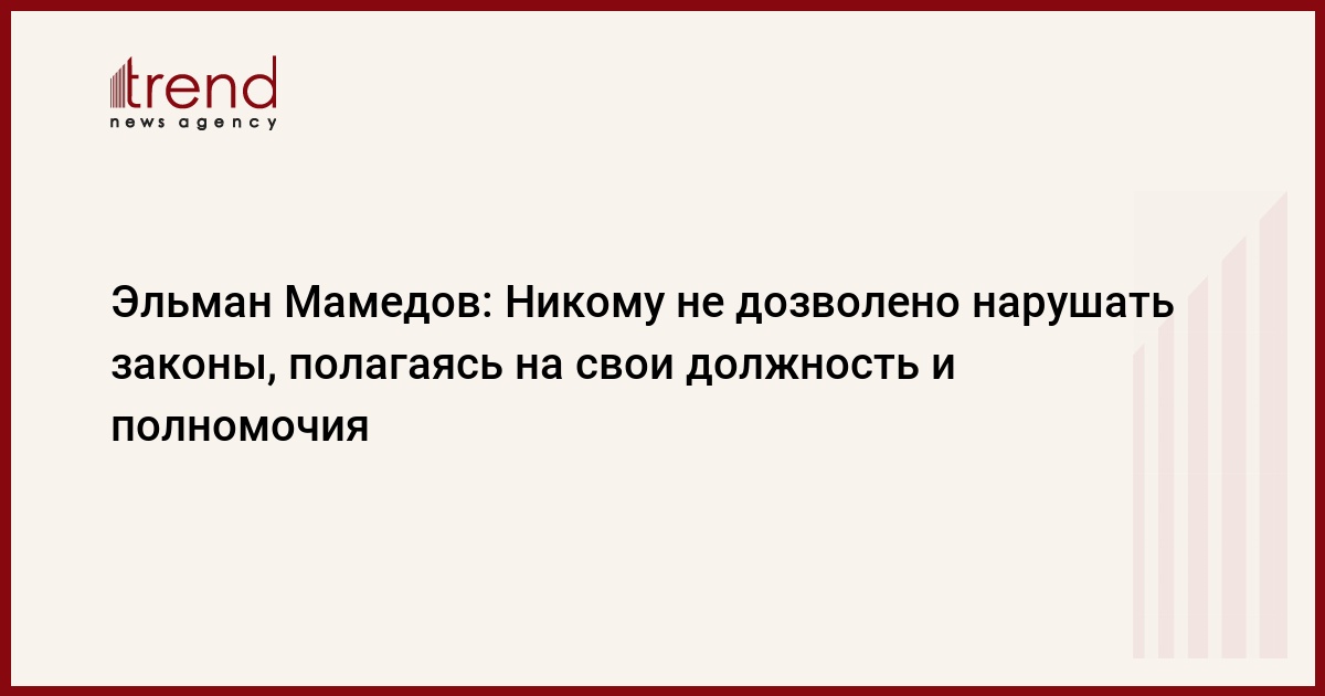 "Президент Азербайджана неоднократно предупреждал чиновников и высокопоставленных лиц, призывая их соблюдать законы страны. Однако, некоторые чиновники все еще считают себя "неприкосновенными" и игнорируют законы. У чиновника, ощущающего себя всесильным на своей должности, наверняка есть проблемы с рассудком и воспитанием. Никому не дозволено нарушать законы, полагаясь на свои должность и полномочия. Азербайджан входит в число стран, которые ведут решительную борьбу с коррупцией и взяточничеством. Любой человек, совершивший преступление, привлекается здесь к ответственности, получая должное наказание", - сказал Мамедов.