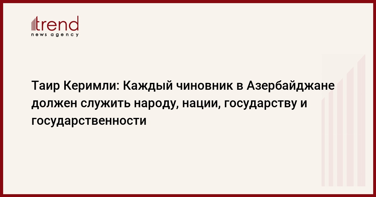БАКУ /Trend/ - Каждый чиновник в Азербайджане должен служить народу, нации, государству и государственности.