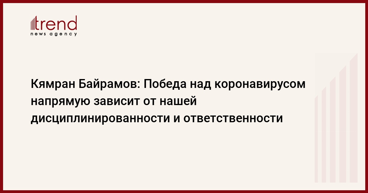 БАКУ /Trend/ - Победа над коронавирусом напрямую зависит от нашей дисциплинированности и ответственности, сказал в четверг Trend депутат Милли Меджлиса (парламента) Азербайджана Кямран Байрамов.