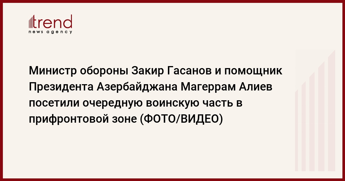 БАКУ /Trend/ - По поручению Президента Азербайджана, Верховного главнокомандующего Вооруженными силами Ильхама Алиева, помощник Президента Азербайджана – заведующий отделом по военным вопросам Администрации Президента Азербайджана генерал-полковник Магеррам Алиев, министр обороны генерал-полковник Закир Гасанов и руководящий состав министерства посетили очередную воинскую часть в прифронтовой зоне, сообщает в четверг Trend со ссылкой на пресс-службу минобороны.