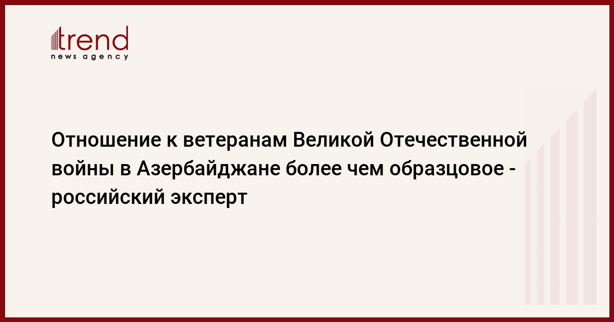 БАКУ /Trend/ - Отношение к ветеранам Великой Отечественной войны в Азербайджане более чем образцовое.