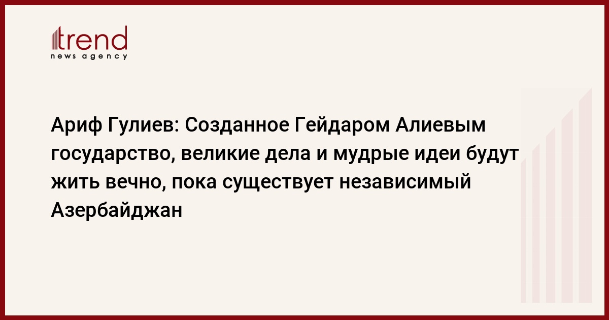 Ариф Гулиев напомнил, что Гейдар Алиев вернулся к руководству Азербайджаном в очень сложное время: «Перед властью стояли такие трудные задачи, как вывод республики из глубокого политико-экономического кризиса, прекращение военной агрессии врага, популяризация Азербайджана в мире, защита национальных интересов. Армения осуществляла широкомасштабную агрессию против азербайджанского народа. Кризис в экономике, политике и других сферах стал серьезным испытанием для страны. В такое трудное время, из-за неопытности и отсутствия профессионализма, находившихся тогда у власти лиц, страна оказалась в неуправляемой ситуации. Этот период был для Азербайджана решающим - или он станет независимым государством, или же расколется и будет уничтожен в результате внутренних раздоров и подрывной деятельности сепаратистских сил. Перед Азербайджаном стоял выбор: «быть или не быть». В тяжелые для Азербайджана дни, когда в связи с началом нагорно-карабахского конфликта произошел захват территории страны армянскими боевиками, наступил полный развал экономики, во властных структурах царила анархия, мудрый народ обратился с просьбой к Гейдару Алиеву взять на себя ответственность за спасение нации. В июне 1993 года Гейдар Алиев был избран председателем Парламента Азербайджана и в то же время стал осуществлять полномочия президента Азербайджанской Республики. В октябре того же года азербайджанский народ избрал его своим президентом. И он обещал и подтвердил каждым своим шагом сказанные им 10 октября 1993 года, на церемонии инаугурации слова: «Азербайджанский народ переживает сложнейший, трагический период своей истории. Я глубоко осознаю степень ответственности, которая возложена на меня в это сложное время и хочу заверить, что всей своей деятельностью, всей своей жизнью постараюсь оправдать высокое доверие, надежды народа».