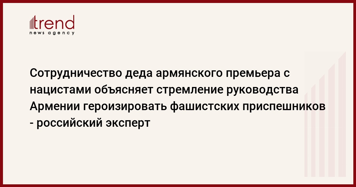 БАКУ /Trend/ - Информация о том, что дед армянского премьера Никола Пашиняна сотрудничал с нацистами, укладывается в общую модель поведения и принятия решений новым руководством Армении.