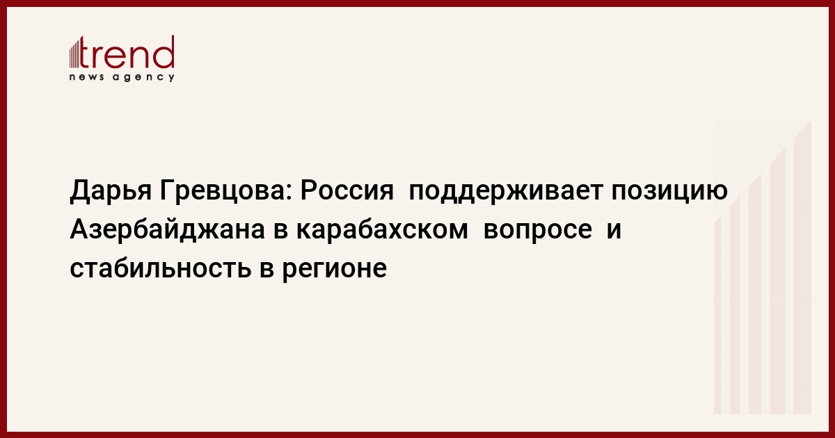 «Сравнительно недавно глава российского МИД Сергей Лавров выступил с предложением подписать договор о поэтапном урегулировании армяно-азербайджанского нагорно-карабахского конфликта, который отказалась подписывать армянская сторона, несмотря на то, что ранее были обсуждены все пункты этого документа. Неадекватное поведение армянской стороны видят и в России, и понимают, что проблема существует, она исходит от ее желания не разрешить конфликт, а сохранить статус-кво в данном вопросе», - сказала Дарья Гревцова.