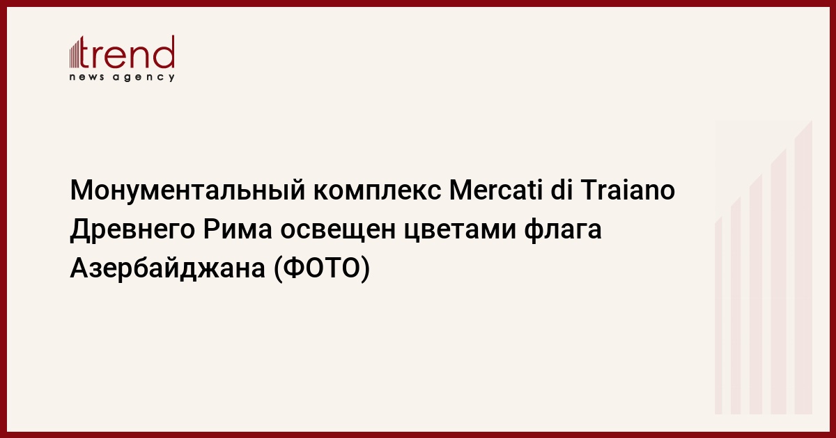 БАКУ/Trend/ - По случаю национального праздника 28 Мая - Дня Республики, грандиозный монументальный комплекс Mercati di Traiano, находящийся в древнем историческом центре Рима, был освещен цветами флага Азербайджана под аккомпанемент государственного гимна нашей страны.