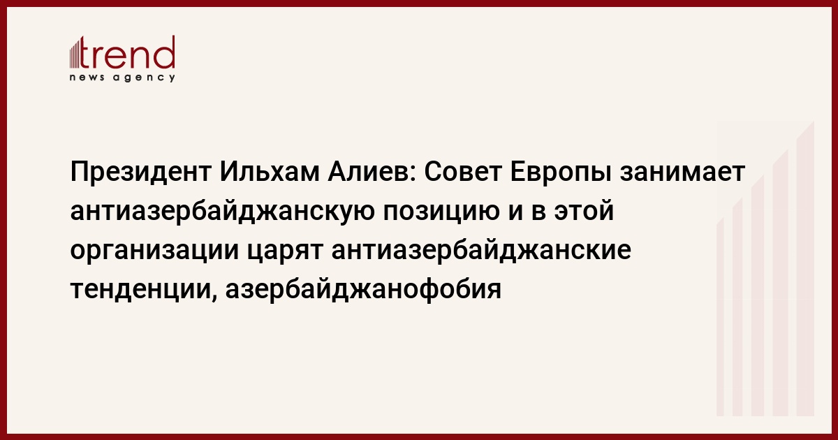 Глава государства подчеркнул, что вся общественность Азербайджана увидела, что Совет Европы занимает антиазербайджанскую позицию, что в этой организации царят антиазербайджанские тенденции, азербайджанофобия, и в основе всех выдвинутых против нас обвинений лежит азербайджанофобия.