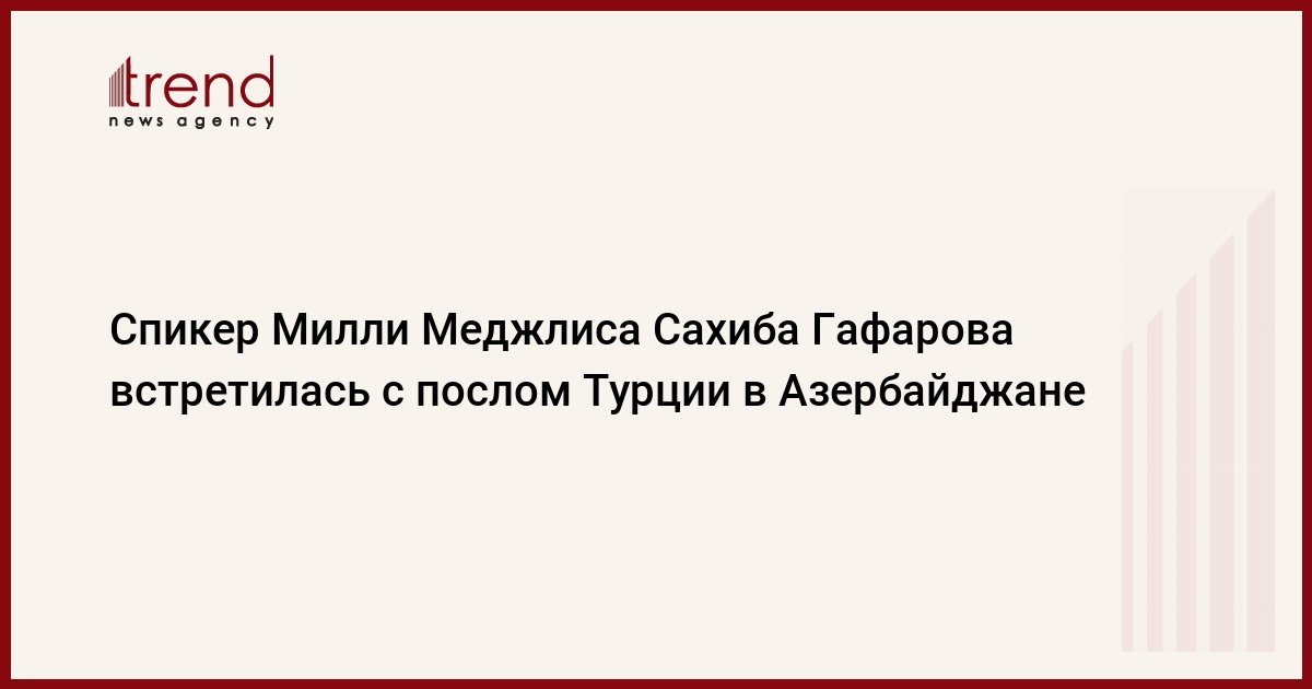 БАКУ /Trend/ - Спикер Милли Меджлиса (парламент) Сахиба Гафарова 11 июня встретилась с чрезвычайным и полномочным послом Турции в Азербайджане Эрканом Озоралом.