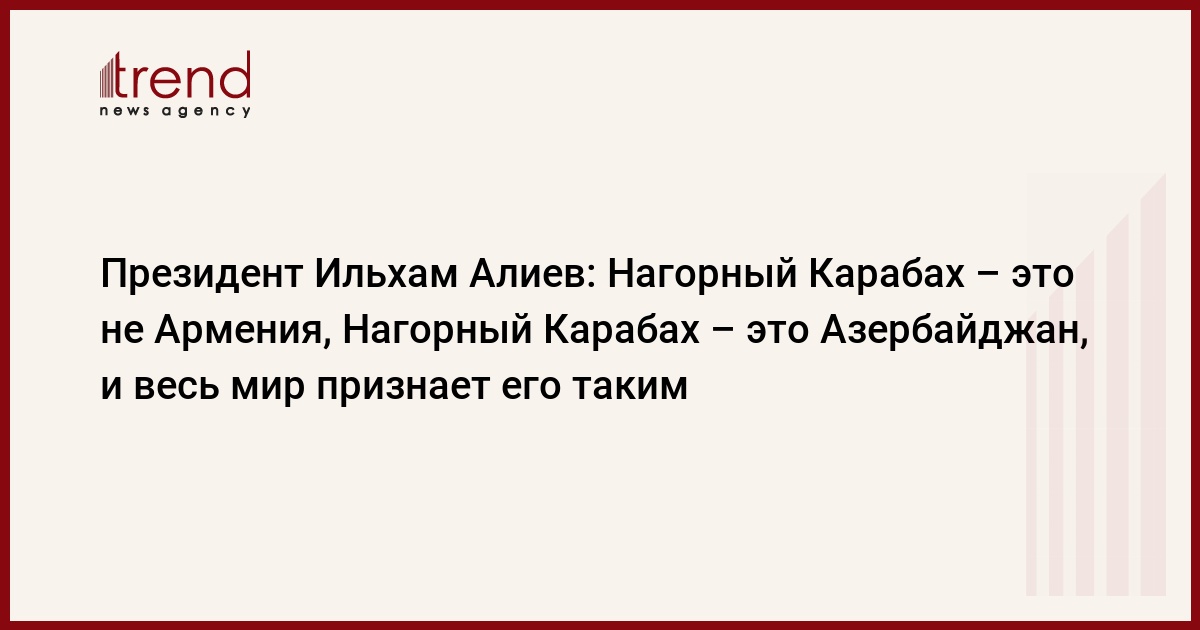 "Вопреки тому, что говорит премьер-министр Армении, пытающийся свести на нет суть и формат переговоров, Нагорный Карабах - это не Армения, Нагорный Карабах - это Азербайджан, и весь мир признает его таким. Территориальная целостность Азербайджана должна быть восстановлена", - подчеркнул Президент Ильхам Алиев.