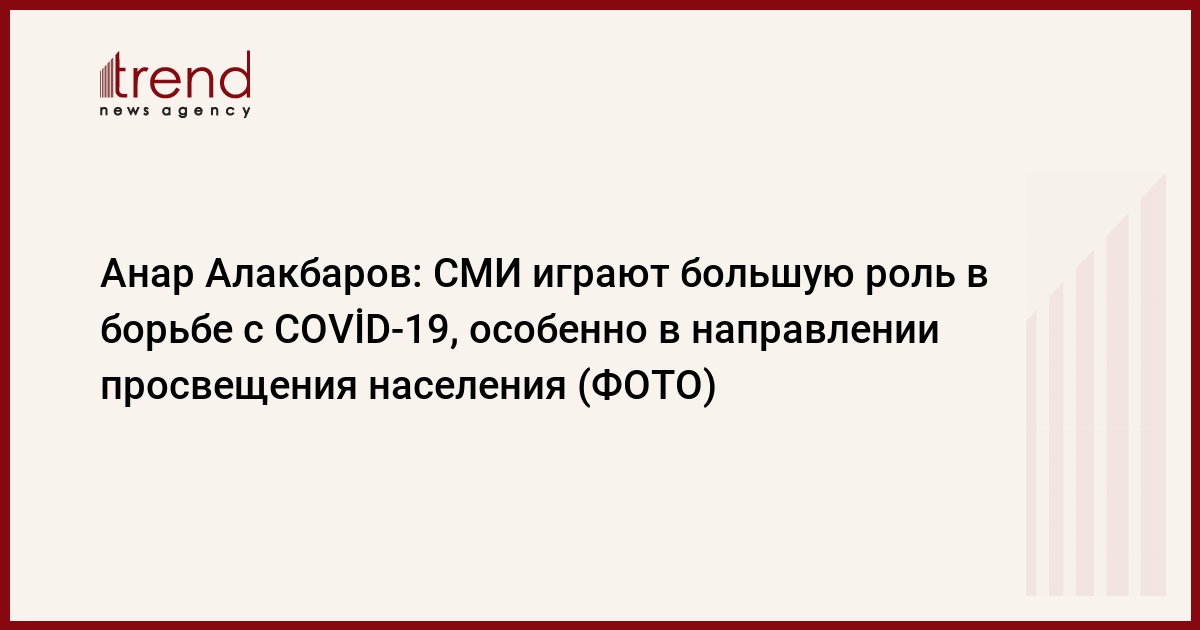 Выступая на встрече, Анар Алакбаров сказал, что СМИ играют большую роль в борьбе с COVİD-19, в частности, в направлении просвещения населения. На встрече, в ходе обмена мнениями, помощник Президента Азербайджана отметил, что, несмотря на все прогнозируемые трудности на начальном этапе распространения пандемии коронавируса, одним из приоритетов для главы государства стала защита граждан, и стратегия деятельности правительства в данной эпидемиологической ситуации была построена именно на этой основе.