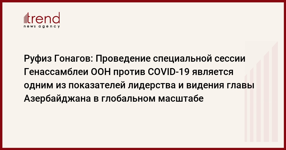 Гонагов отметил, что проведение специальной сессии Генассамблеи ООН по борьбе против COVID-19 станет одним из показателей глобального лидерства и видения Президента Азербайджана.
