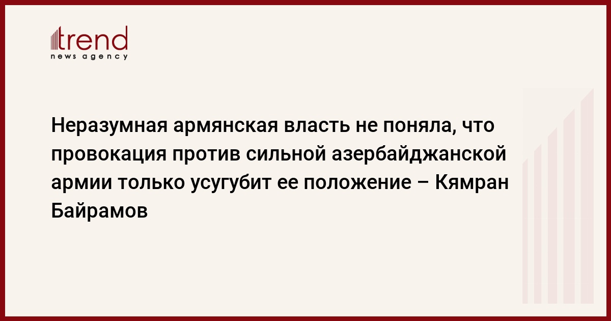 Но, не прекращая свою коварную политику, Армения вновь прибегла к провокации. Не секрет, что Армения переживает глубокий политический, социальный и экономический кризис. С другой стороны, дипломатические успехи Азербайджана, разоблачение Президентом Ильхамом Алиевым, с использованием убедительных аргументов, захватнической политики и фашистской сущности Армении перед международной общественностью, а также принятие справедливых решений по армяно-азербайджанскому нагорно-карабахскому конфликту ведущими международными организациями мира, ставит внешние проармянские круги и армянскую власть перед серьезными проблемами. Чтобы скрыть свои неудачи и отвлечь от них внимание власть Армении прибегла к провокации. Неразумная армянская власть не поняла, что провокация против сильной азербайджанской армии только усугубит ее положение».